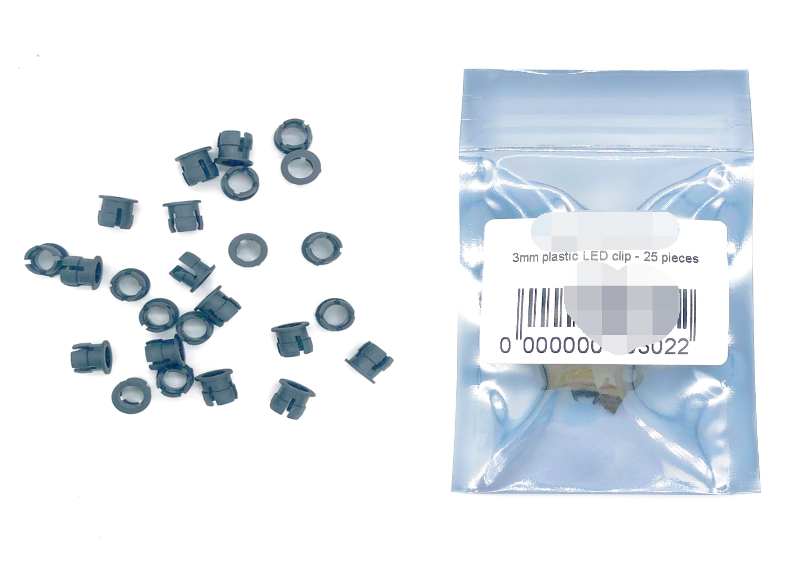 For the 3mm LED Plastic Clip, our warehosue re-pack 25pcs in one Antistatic bag,and take pictures of the kits